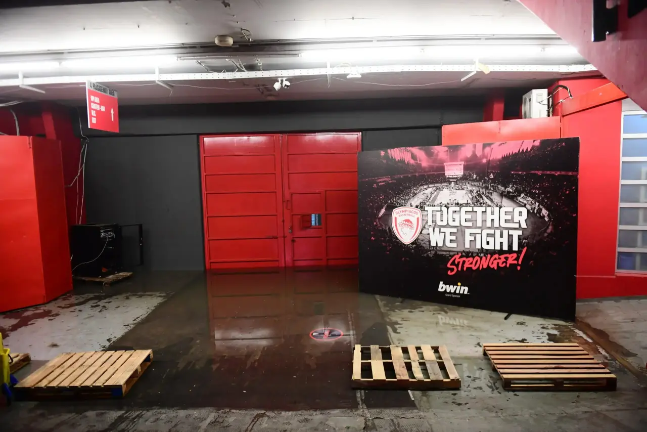 Ancak salonun "O Thalassis" olarak bilinen bölümü ve organize taraftarların giriş yaptığı kapının alt kısımları, sular altında kaldı.