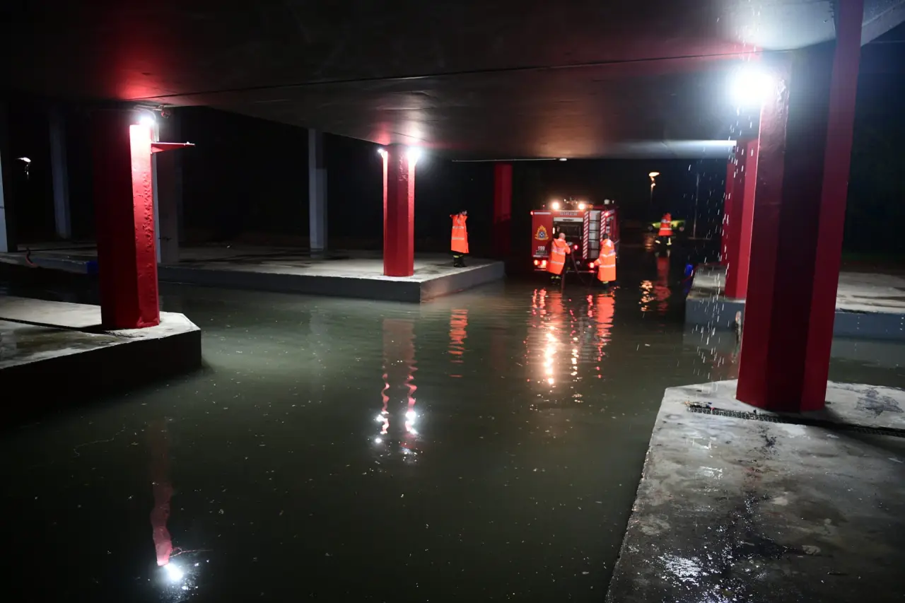 Şiddetli yağış, Barış ve Dostluk Stadyumu'nun iç kısımlarını da vurdu. Ana salonun tavanında meydana gelen ufak sızıntılar, görevlilerin muşamba ve yağmurluklarla yaptığı anlık müdahalelerle kontrol altına alındı ve oyun alanı kuru tutuldu.