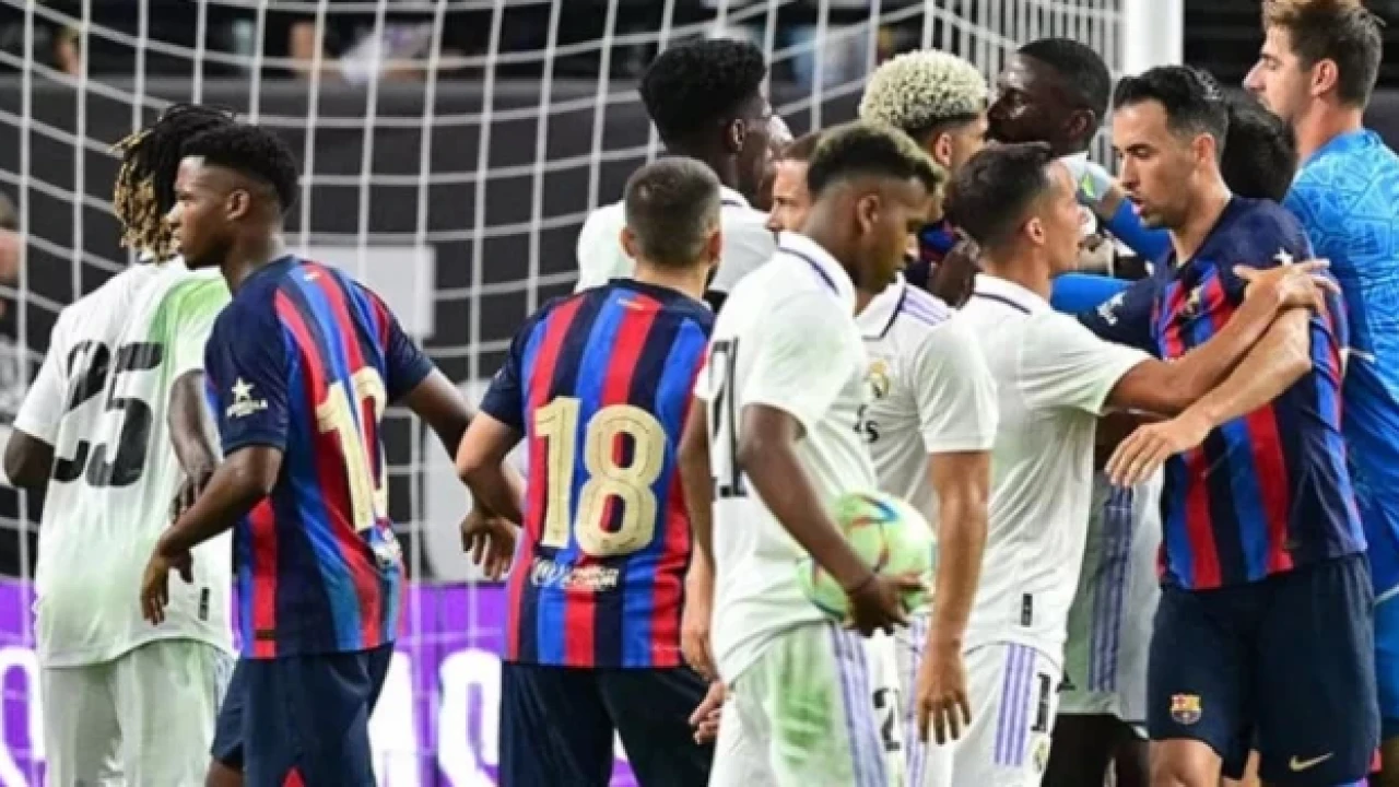 Barcelona ve Real Madrid arasındaki oyananan hazırlık maçında yapılan sert bir faulün ardından saha karıştı.