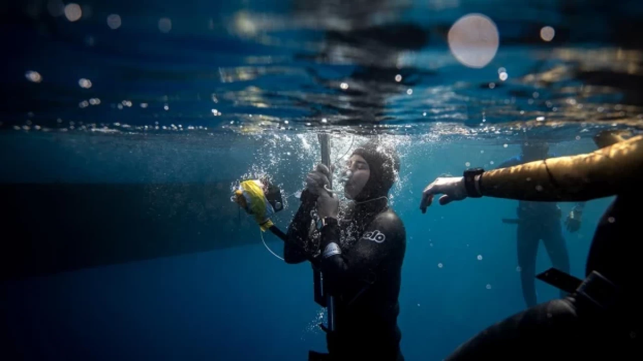 Milli sporcu Şahika Ercümen, Cumhuriyet'in 100. yılı için Hatay'da yaptığı dalışta paletsiz değişken ağırlık kategorisinde 105 metre dünya rekorunu kırdı.