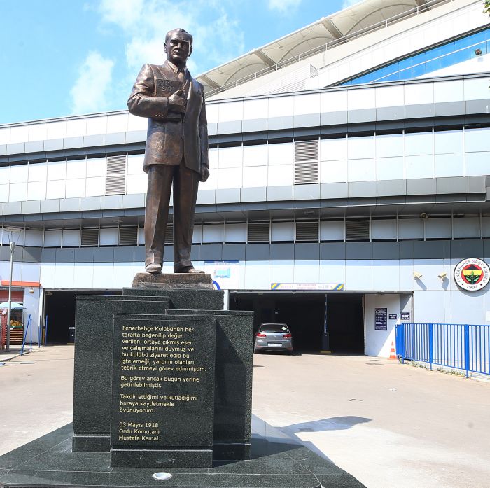 Fenerbahçe, Cumhuriyet'in 100. yılına girmeye hazırlanırken Türkiye Cumhuriyeti'nin kurucusu Gazi Mustafa Kemal Atatürk'ün heykelini stadın önüne dikti.