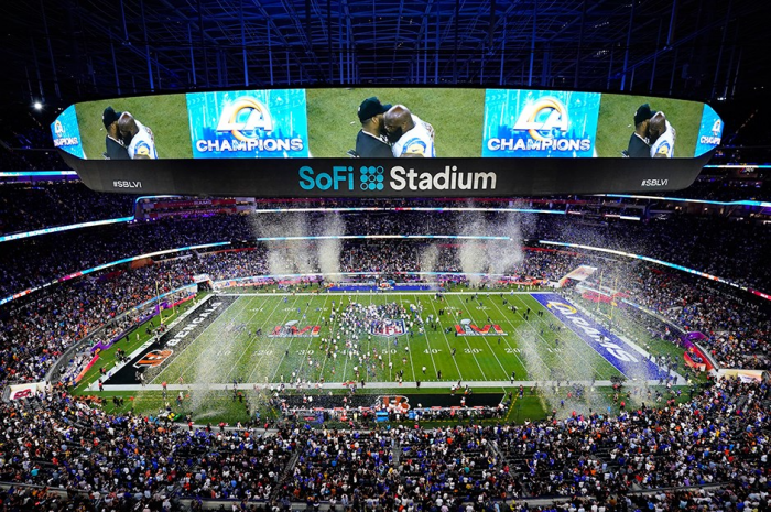 NFL'in şampiyonluk müsabakası California eyaletinin Inglewood şehrinde yer alan 100,240 kapasitelik SoFi Stadyumunda oynandı. COVID-19 önlemleri nedeniyle yaklaşık 70 bin kişinin izlediği karşılaşmada seyircilerden maske takma zorunluluğu, aşı karnesi veya negatif test sonucu ibraz etmeleri istendi.