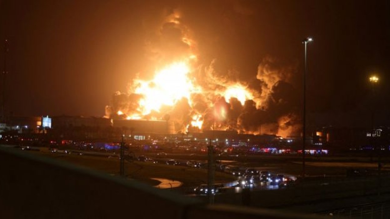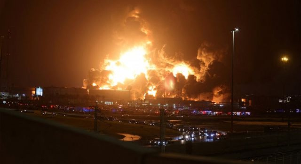 Rafineride bir patlamanın olduğu ve devamında da yangının çıktığı pistten dahi gözüktü.