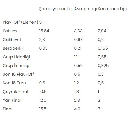Şampiyonlar Ligi, Avrupa Ligi ve Konferans Ligi'nde 2022-23 sezonunda dağıtılacak para ödülleri şöyle: