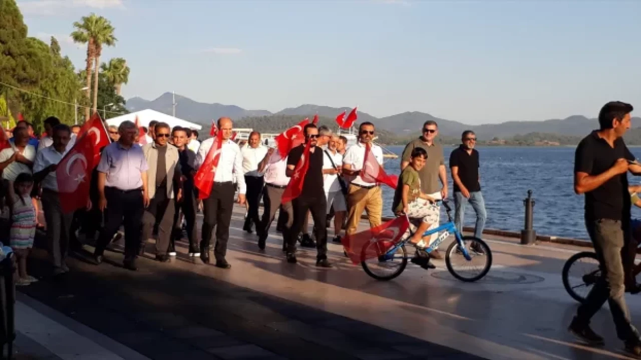 Cumhuriyet meydanında folklor ekibinin gösterisinin ardından Köyceğiz kordonunda kortej yürüyüşü yapıldı.