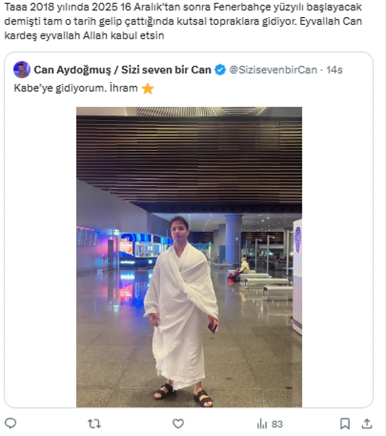Can Aydoğmuş'un aynı tarihte Kabe ziyareti yapması da olay oldu. Sarı-lacivertli taraftarlar Aydoğmuş'un ziyaretinin de Fenerbahçe'yle ilgili olduğunu söyleyen paylaşımlar yaptılar: