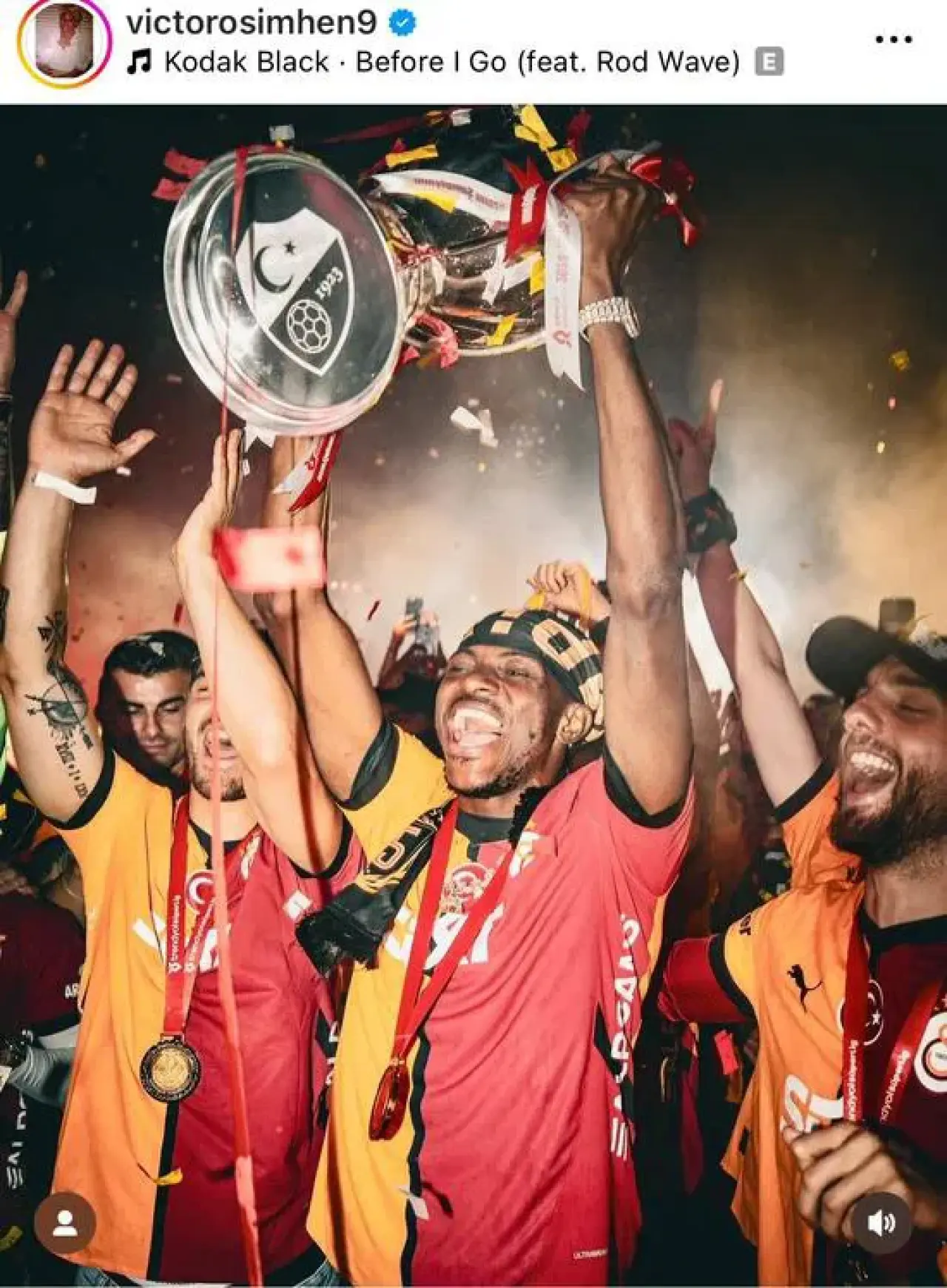 Galatasaray’da 40 resmi maçta 36 gol ve 8 asistlik etkileyici performansıyla taraftarların gönlünde taht kuran Victor Osimhen, sarı-kırmızılılarda kalmak isterken veda sinyali verdi. Nijeryalı golcü, Instagram’dan şampiyonluk kupası ve kutlama fotoğraflarına “Before I Go” (Ben Gitmeden Önce) şarkısını ekleyerek, ayrılık ihtimalini gündeme getirdi.