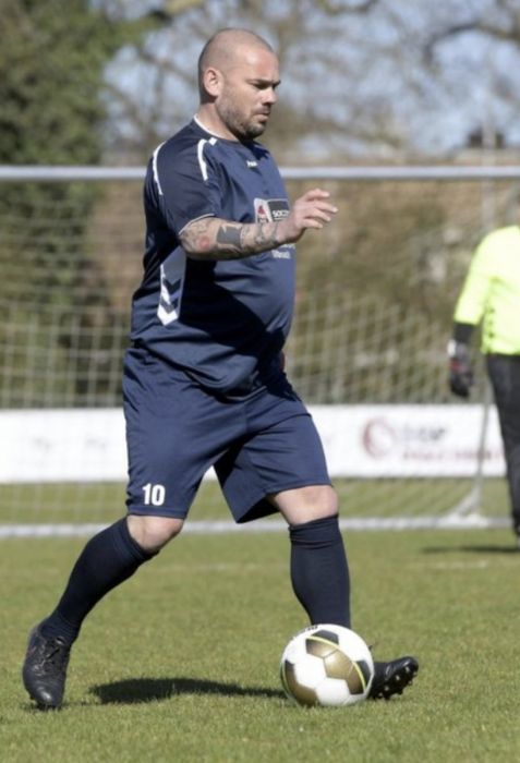 Sneijder, kendi tesisinde düzenlenen mücadelede forma giydi. Uzun zaman sonra yeşil sahada boy gösteren 37 yaşındaki Hollandalı eski futbolcunun kilolu görüntüsü şaşkınlık yarattı.