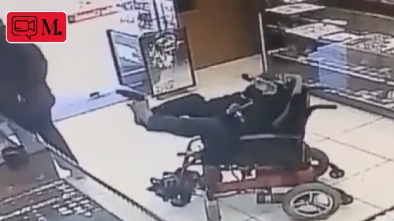 ABD'de bacaklarından fiziki engel bulunan bir kişi tekerlekli sandalyeyle kuyumcuya girdi.