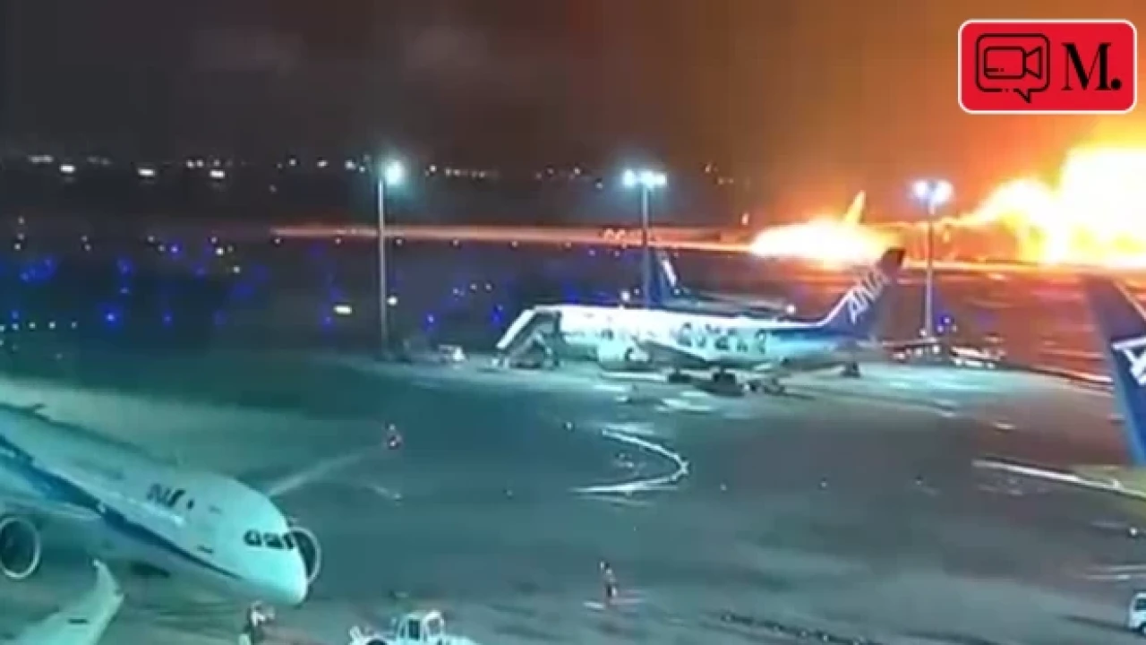Japonya'nın başkenti Tokyo'daki Haneda Uluslararası Havalimanı'nın pistinde bir uçak, hareket halindeyken yanmaya başladı.