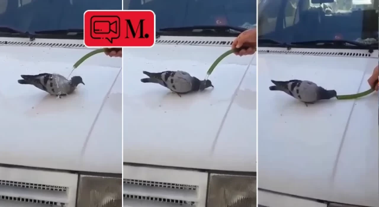 Aracını yıkayan Serçe’nin arabayı yıkamayı bırakarak su içen güvercini hortumdan akan suyla serinletmeye çalışması yürek ısıttı. Kısa sürede sosyal medyada büyük etkileşim alan görüntü binlerce kez beğenildi.
