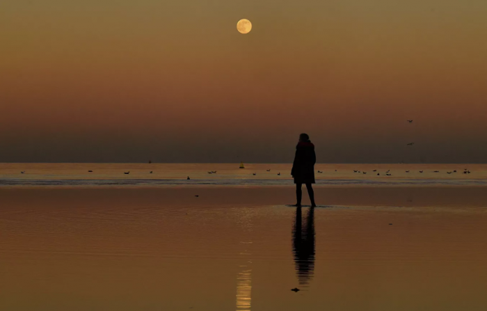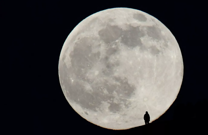 İngiltere Glastonbury'de Ay'ın yükselişini izleyen bir kişi