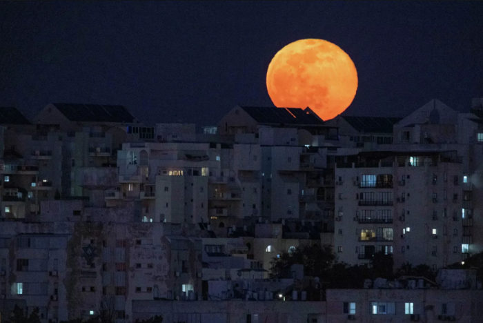 İsrail'in güneyindeki Aşkelon kentinden görülen dolunay