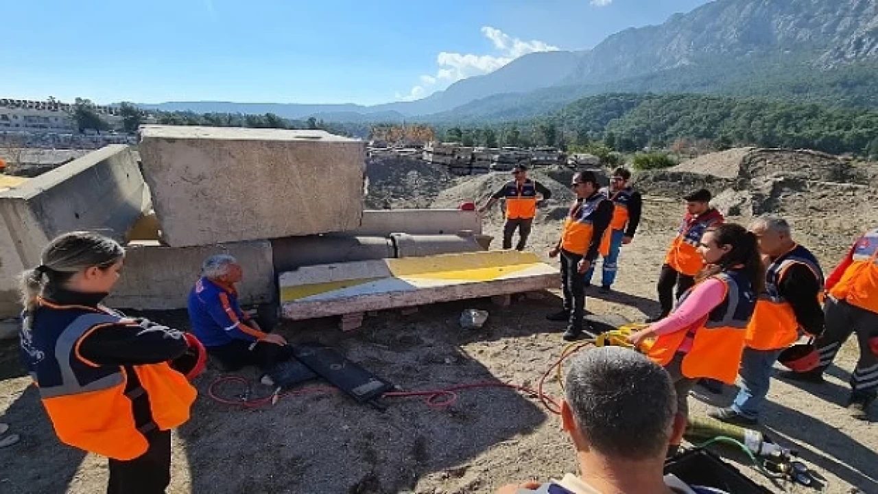 Kemer Belediyesi Kültür Salonu’nda teorik eğitim alan muhtarlar ve AFAD gönüllüleri, daha sonra doğada pratik eğitim aldı.