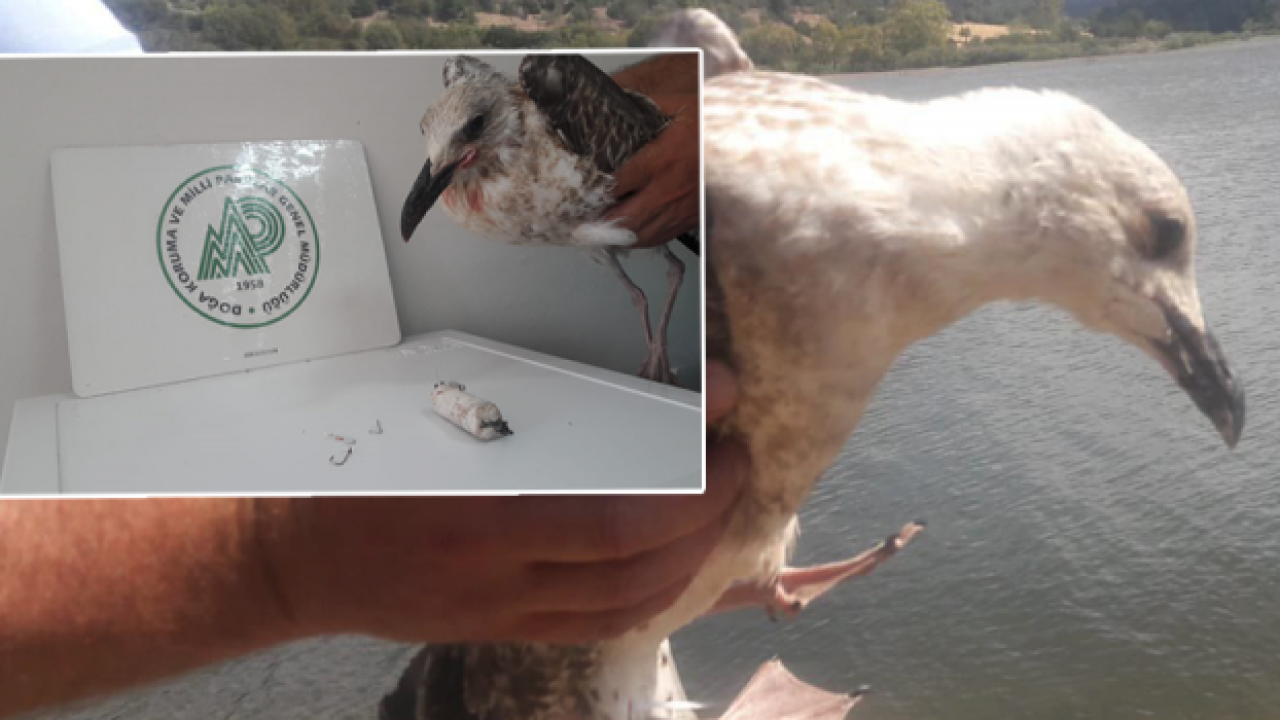 Ağzından 3 balık kancası çıkarılan martı, yeniden doğal ortamına bırakıldı.