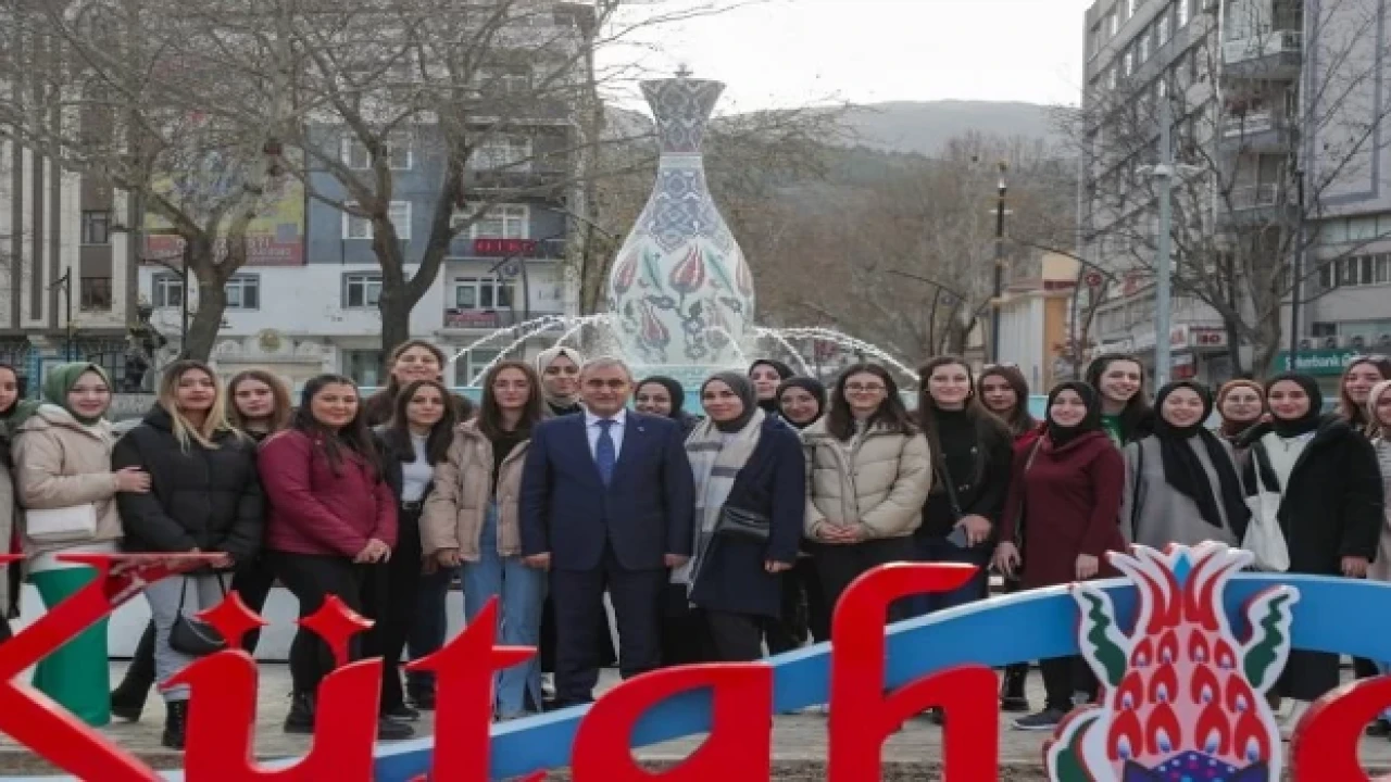 Kütahya Belediye Başkanı Prof. Dr. Alim Işık, şehri gezen Gediz Meslek Yüksekokulu öğrencilerine Zafer Meydanı’nı ve Vazo’yu anlattı.