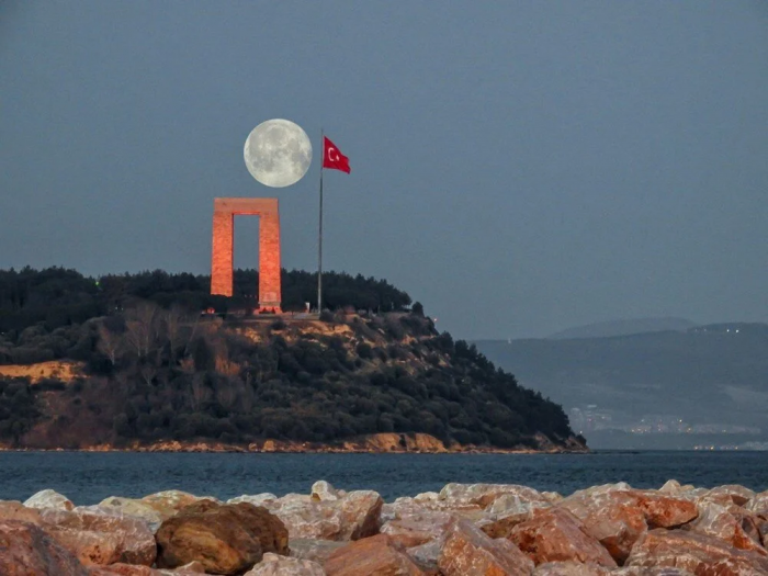 Fotoğraf sanatçısı İsa Turan'ın çektiği görüntülerde en çok beğenilen, Çanakkale Şehitler Abidesi, Türk Bayrağı ve dolunayın eşsiz uyumu oldu.