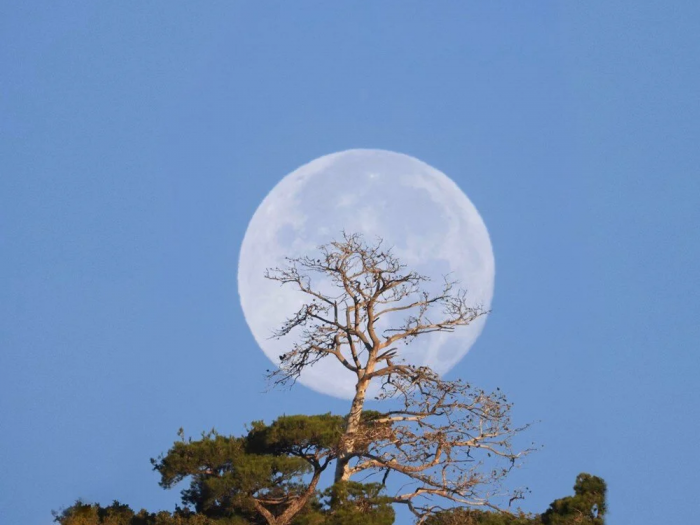 ‘Kunduz Ayı’ olarak belirtilen kasım ayında ise İzmir Yaman Dağı’nda kaydedilen görüntüde bir ağacın zirvesinde yerleşen dolunay görüldü.