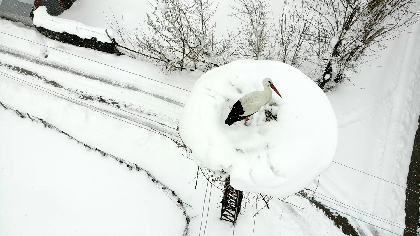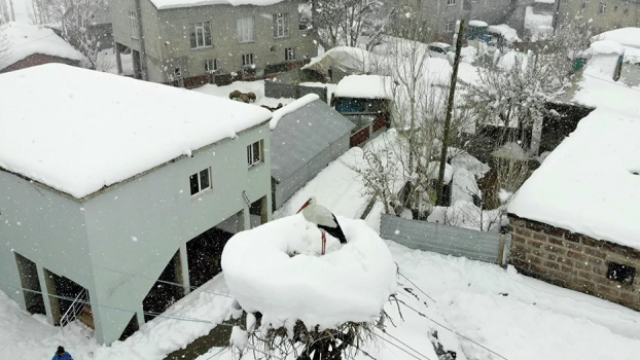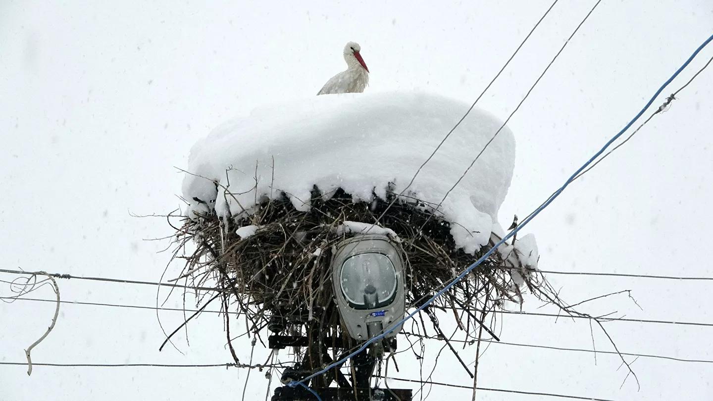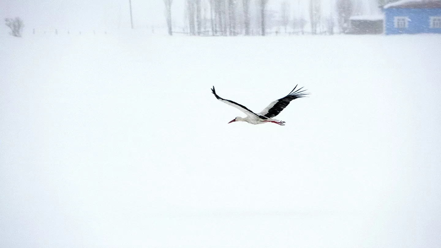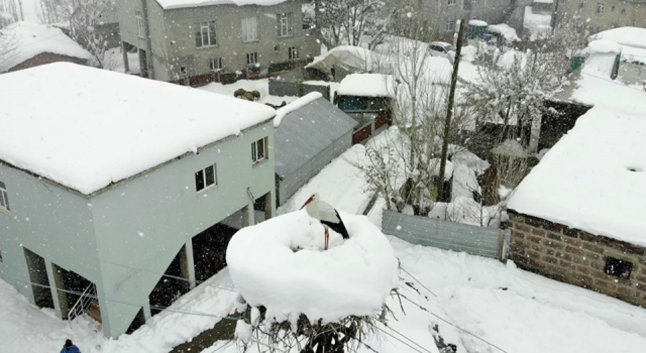 Muş Ovası, yıllardır elektrik ve telefon direkleri, cami kubbeleri ile evlerin çatısına yuva yapan yüzlerce leyleği ağırlıyor. Bu yıl da 15 gün önce bölgeye gelmeye başlayan leylekler, kentte etkili olan yoğun kara yakalandı.