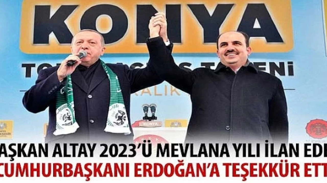 Başkan Altay, “Aynı zamanda Cumhuriyetimizin 100. yılı olan ve Türkiye Yüzyılı vizyonuyla çağa yön verecek 2023, ülkemiz ve Konya’mız açısından çok önemli bir yıl olacak. Vuslatın 750’nci yılı olan 2023 yılının Mevlana Yılı olarak kutlanmasını ilan eden Sayın Cumhurbaşkanımıza sonsuz şükranlarımı sunuyorum.” dedi.