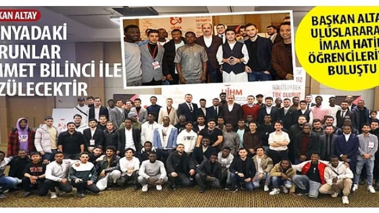 Başkan Altay, dünyadaki sorunların Müslümanlar arasında ümmet bilincinin kazanılmasıyla çözüleceğini belirterek, “Bu salonda bir araya geldiğimiz gibi dünyanın her yerinde meselelerimizi konuşmayı, bir arada olmayı ve sesimizi çıkarmayı başarabildiğimizde zaten ortada büyük bir sorun kalmayacaktır. Uluslararası İmam Hatiplerimizin böyle bir misyonunun olmasından dolayı büyük bir mutluluk duyuyorum.” dedi.