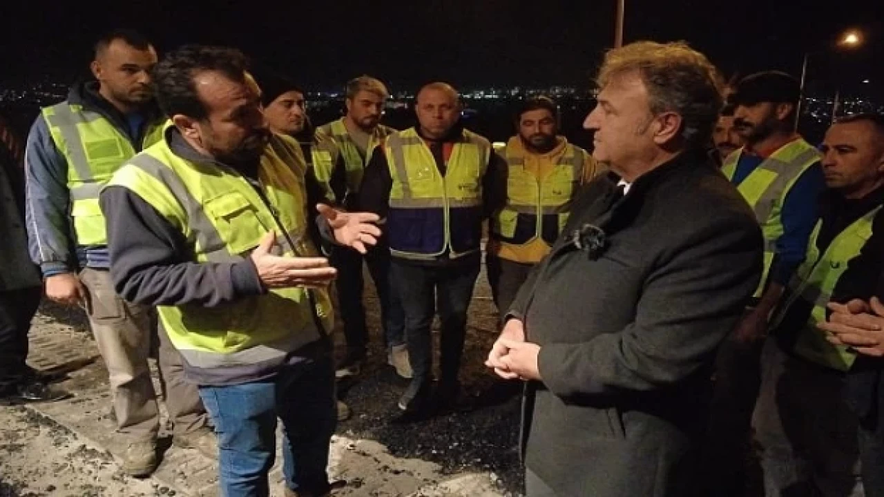 Gece yapılan çalışmalarda işçileri sık sık ziyaret ederek incelemeler yapan Başkan İduğ, çalışmaların son gününde de onların yanında oldu. İşçilere sürpriz yaparak baklava ikram eden Başkan Mustafa İduğ, hem çalışmaların tamamlanmasını hem de yeni yıllarını kutladı.