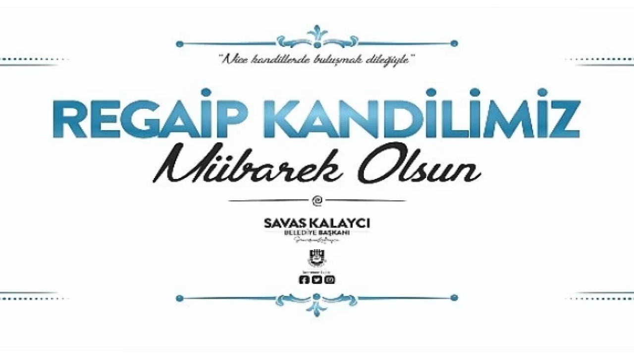 Belediye Başkanı Savaş Kalaycı, mesajında: “İnsanlara lütuf ve inayetin ihsan edildiği, rahmet ve merhamet kapılarının aralandığı bu müstesna gecede; Yüce Allah’a hamd-ü senalarımızı sunarak Regaip Kandilimizin ve üç ayların hayırlar getirmesini temenni ediyor, Karaman halkı başta olmak üzere milletimizin ve İslam âleminin kandilini kutluyor, tüm hemşehrilerimi sevgi, saygı ve muhabbetle selamlıyorum” dedi.