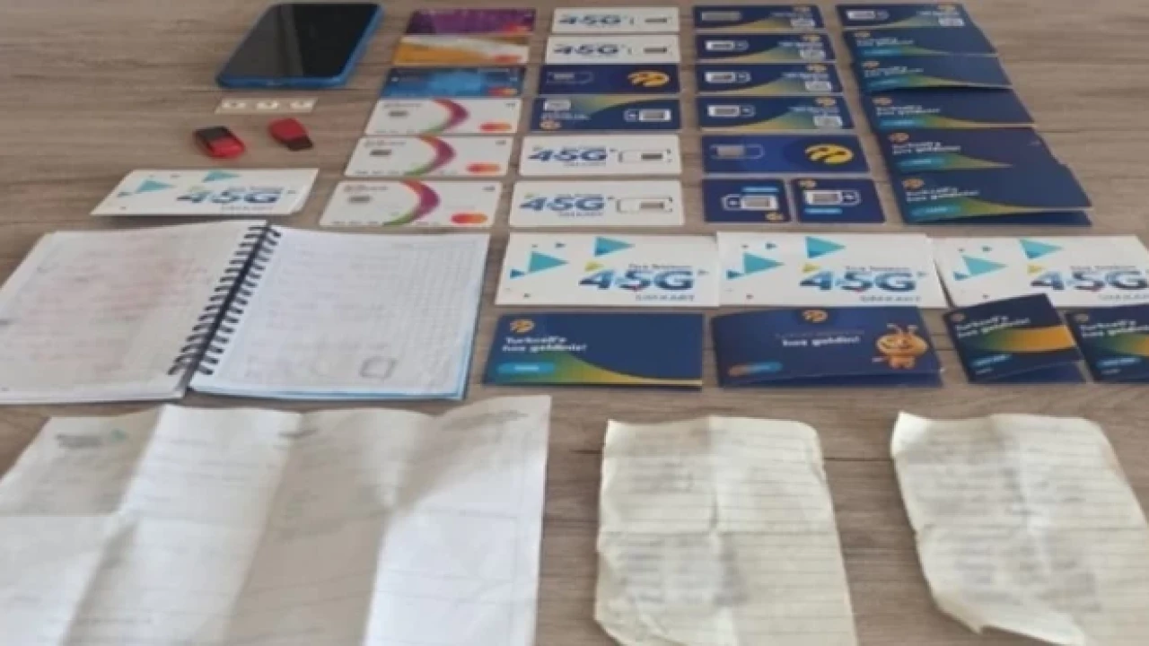 Şahsın adresinde yapılan arama sonucunda çok sayıda başka şahıslar adına düzenlenmiş banka kartları ve SİM kartlara el konuldu.