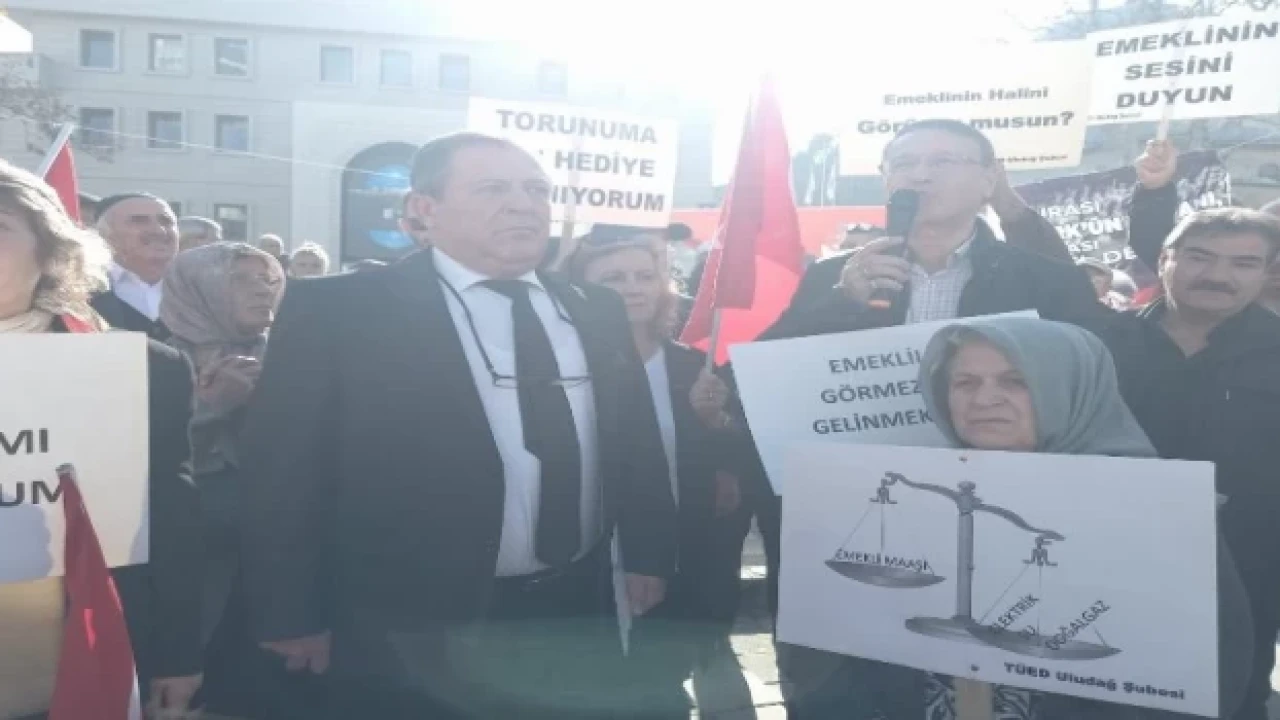 Türkiye Emekliler Derneği Uludağ Şube Başkanı Kenan Pars, Bursa 15 Temmuz Demokrasi Meydanı'nda basın açıklaması yaptı. TÜED Uludağ Şube Başkanı Kenan Pars, üyeleriyle birlikte, emeklilerin taleplerini ve sorunlarını meydanlardan haykırdı.