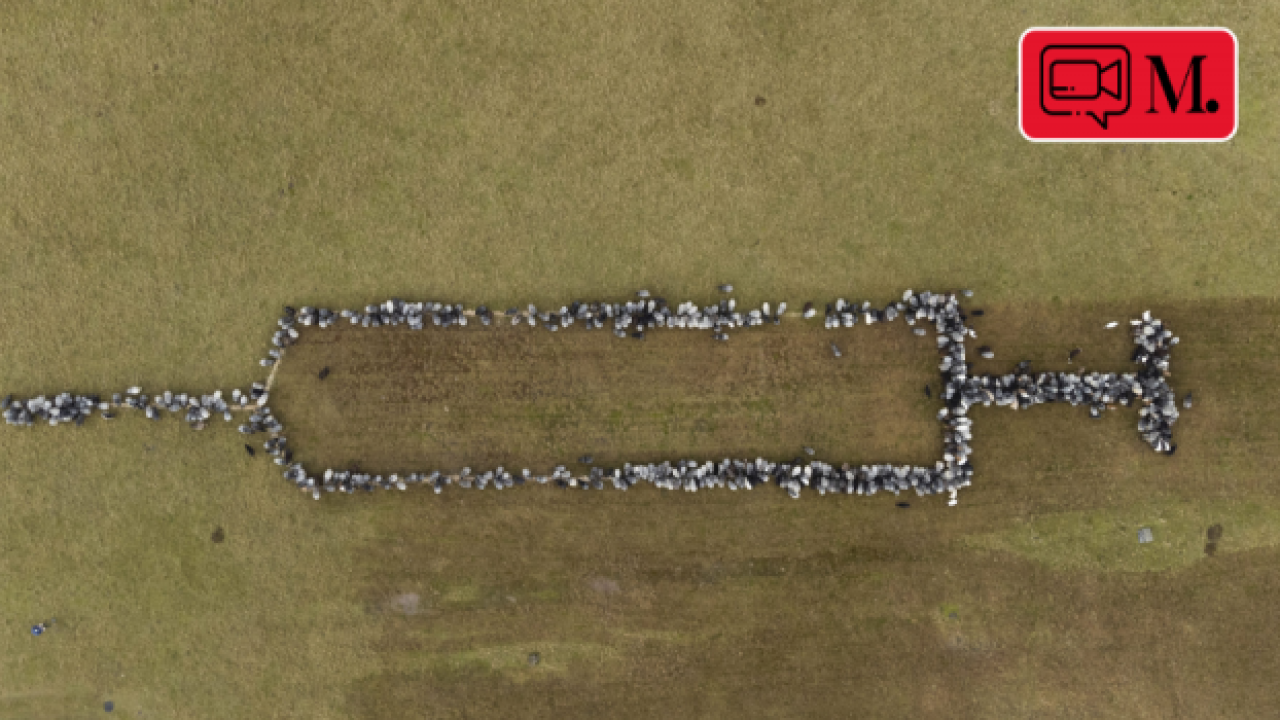 Almanya'da, bir çoban, Kovid-19'a karşı aşı yaptırılmasını teşvik etmek amacıyla yaklaşık 700 koyun ve keçiyle şırınga işareti oluşturdu.