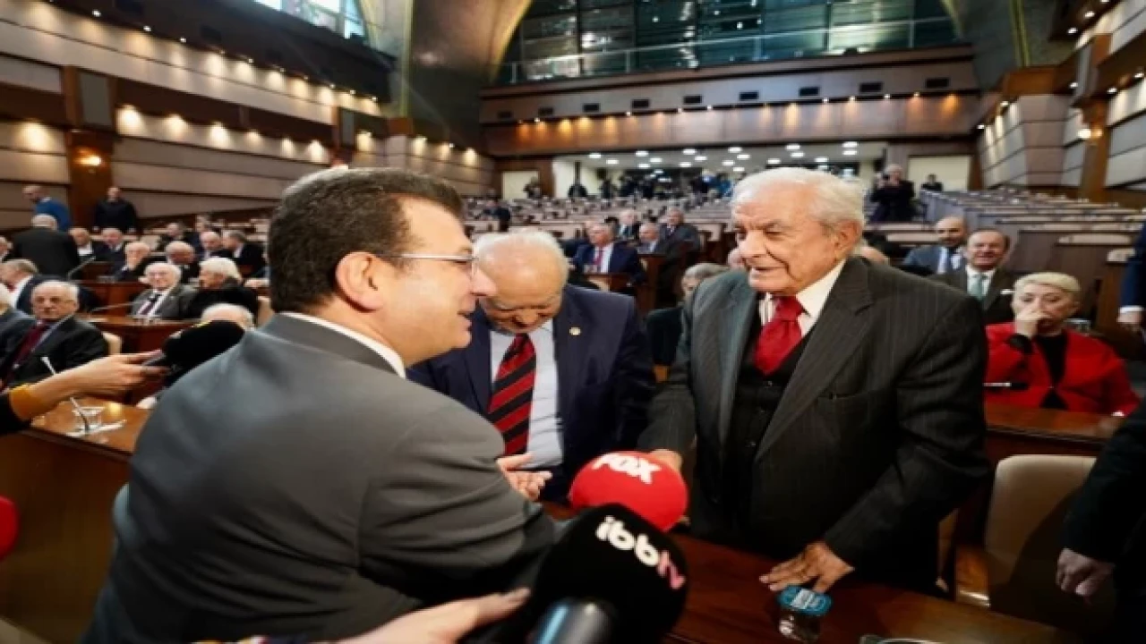 İSTANBUL (İGFA) -Türkiye siyasi hareketinin farklı yelpazelerinde yer almış, ülke politikasına yön vermiş duayen siyasetçiler, hakkında hapis ve siyasi yasak kararı verilen İstanbul Büyükşehir Belediye (İBB) Başkanı Ekrem İmamoğlu’na destek vermek için Saraçhane’de buluştu. İmamoğlu, aralarında Altan Öymen, Murat Karayalçın, Hikmet Çetin, Hüsamettin Cindoruk, Saadettin Tantan, Algan Hacaloğli, Nesrin Nas, Hikmet Sami Türk, Seyfi Oktay, Mukadder Başeğmez, Celal Doğan, Nurettin Sözen, Ali Müfit Gürtuna, Yaşar Okuyan, Ercan Karakaş, Yüksel Yalova, Süleyman Çelebi ve Süheyl Batum gibi isimlerin bulunduğu yaklaşık 90 duayen siyasetçiyi, İBB Meclis Salonu’nda ağırladı.