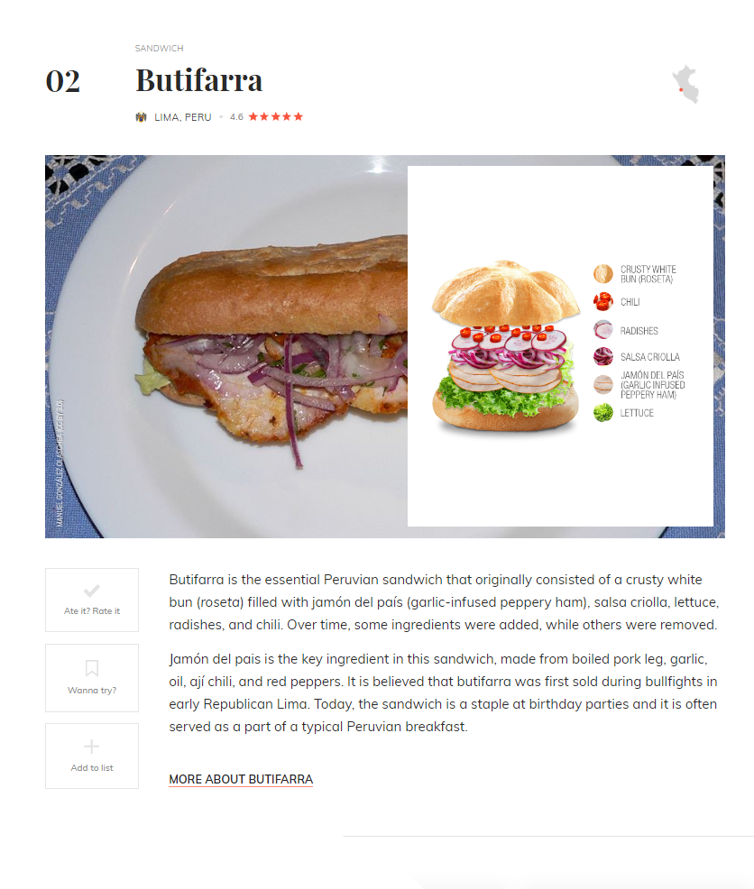 Listede ikinci sırada ise Peru'dan Butifarra yer alıyor.