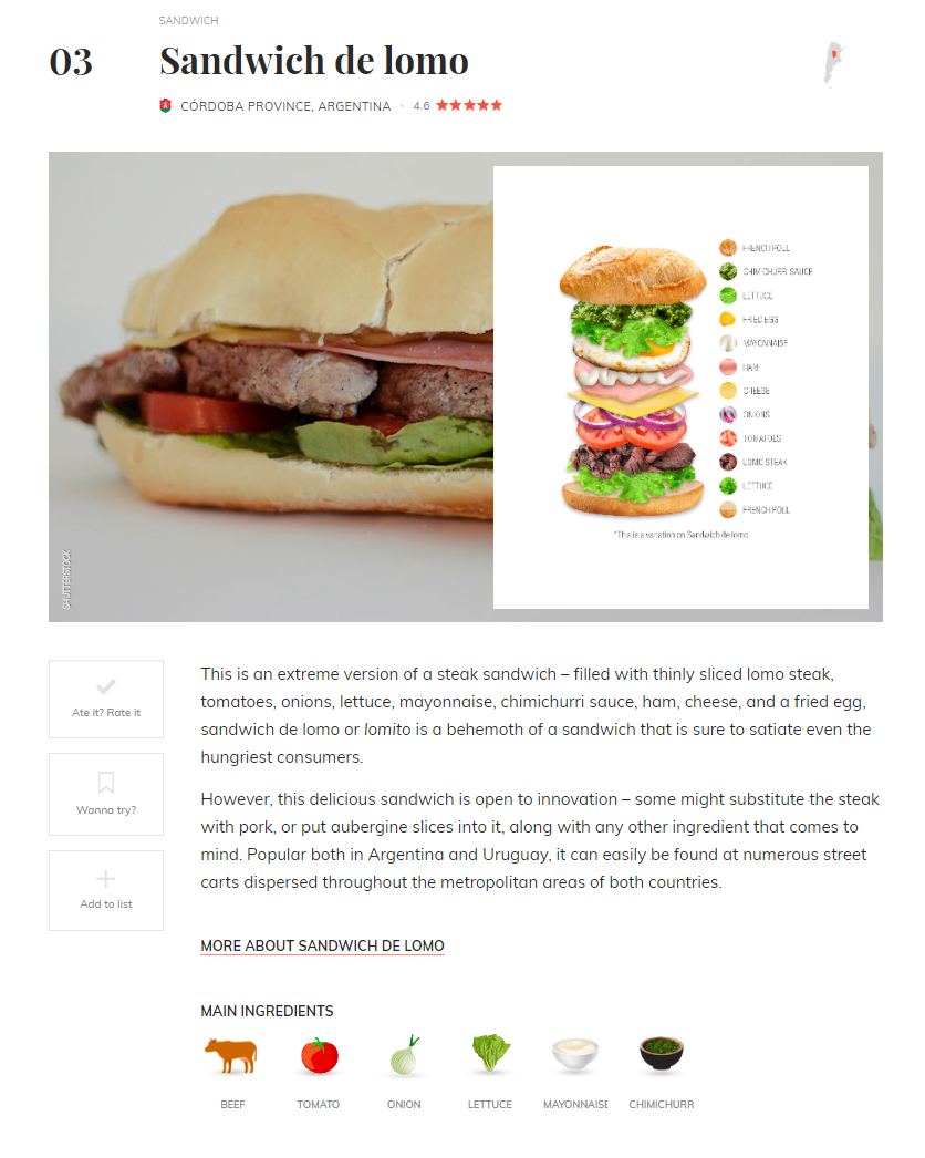 Üçüncü sırayı ise Arjantin'den Sandwich de lomo almış.