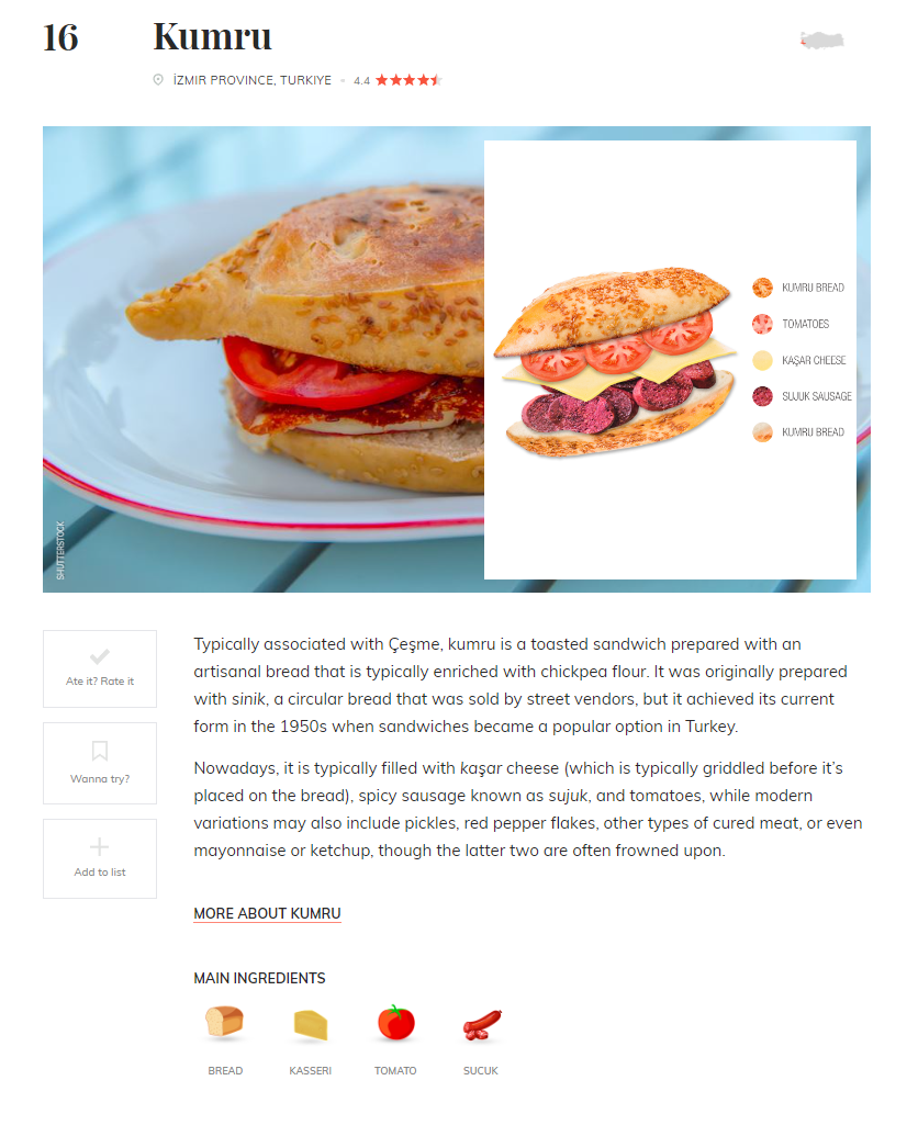 Türkiye'nin diğer bir lezzeti kumru ise TasteAtlas'ın hazırladığı listede 16. sırada kendisine yer buldu.