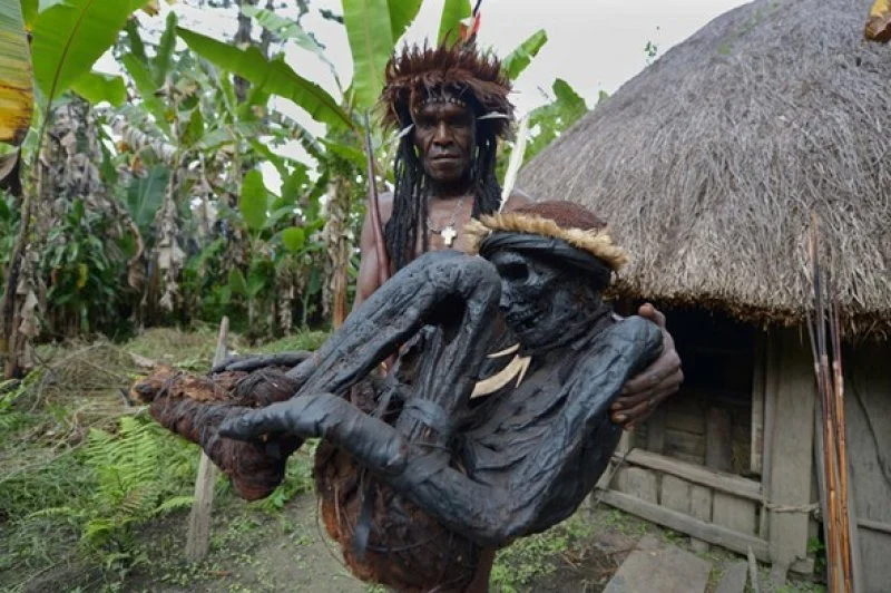 Papua Yeni Gine’nin dağlarında yaşayan birkaç kabile ölen kişilerin güçlerini taşımak için yıllardır ilginç bir yönteme başvuruyorlar. Ölen kişilerin ayak, diz ve dirseklerine delikler açılıyor ve daha sonrasında bedeni asıyorlar. Sonrasında vücutta bulunan tüm yağ çıkarılıyor ve ölen kişinin ailesin veriliyor.