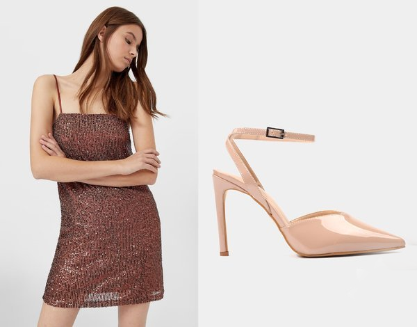 Her ten rengine yakışacak renkte bir payetli elbise ve rugan ayakkabılar... Dışarı çıkabileceğimiz bir yılbaşında yapmak zorunda değilsiniz bu kombini, kendinizi evde de mutlu edebilirsiniz. Yılbaşı ışıltısını yansıtmak tam size göre!