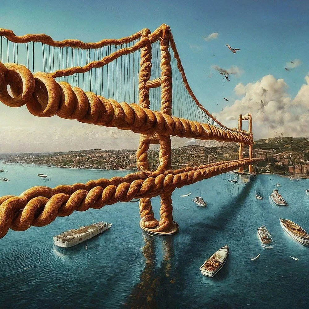 Google Türkiye, Gemini'den İstanbul'u tamamen baklavadan, simitten, çiğ köfteden ve pamuk şekerden oluşan görsellerle birleştirmesini çizmesini istedi.