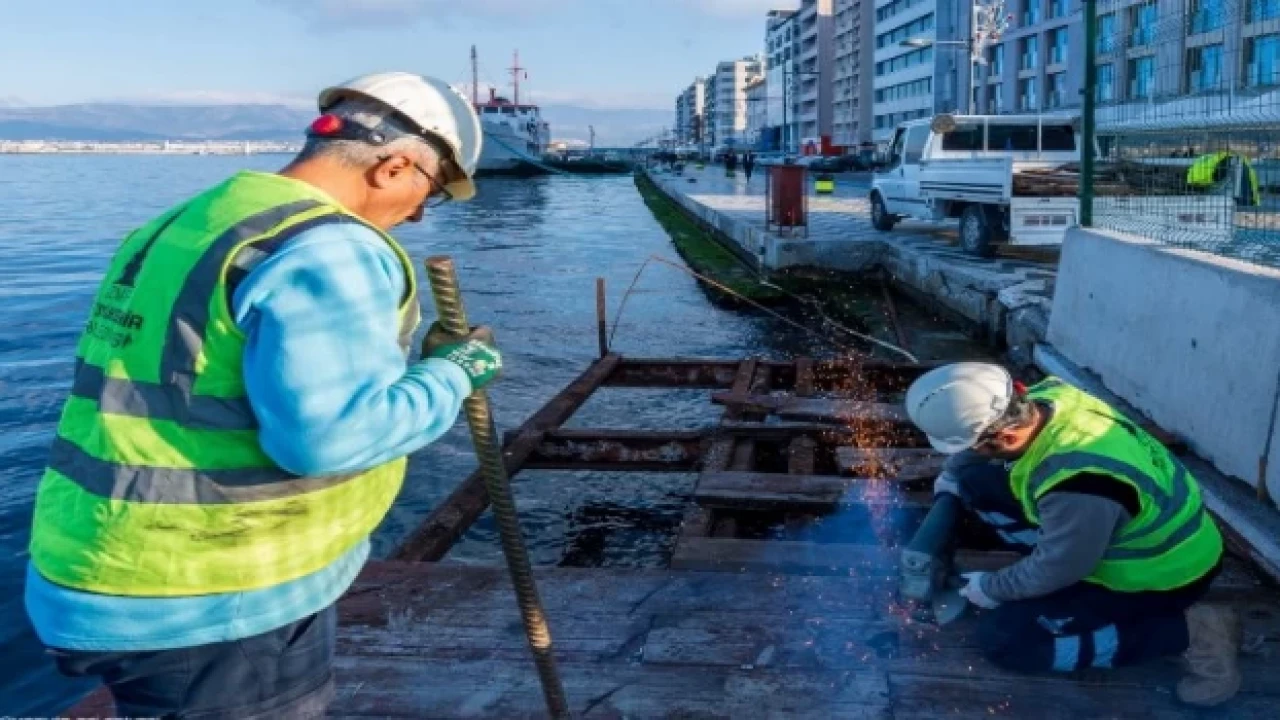 İzmir Büyükşehir Belediyesi, deniz suyunun etkisiyle çürüyerek yurttaşların can ve mal güvenliğini riske atan Konak Pier ve Pasaport Vapur İskelesi arasındaki üç seyir terasının sökümünü başlattı.