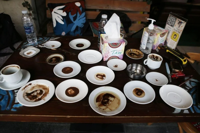 Ürdünlü Karan, başkent Amman'daki kafelere giderek, çalışanlardan kahve istediğini, daha sonra da fincan tabağına, bazen de fincan içine resimler çizdiğini belirtti.