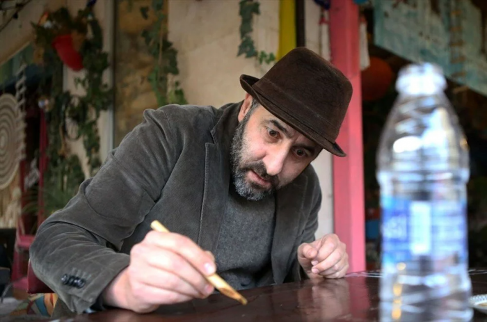 Ürdünlü ressam Ahmed el-Karan, aşk acısını unutmak için kahve telvesini sanata dönüştürdüğü eserler üretiyor.