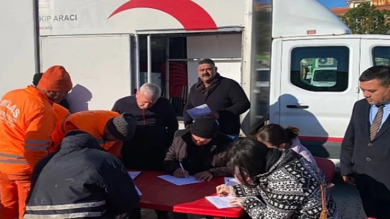 Milas Belediyesi personeli ve vatandaşlar, deprem bölgelerimizdeki acil kan ihtiyacına katkı sağlamak için Ek Hizmet Binası arka bahçesinde kurulan kan bağışı tırına yoğun ilgi gösterdi.