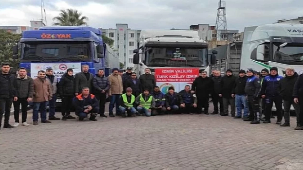 Depremzedelerin yaralarını sarmak için el ele veren İzmir Valiliği ve AFAD koordinesinde, Kınık Kaymakamlığı ve Kınık Belediyesi işbirliği ile Kınıklılar tarafından toplanan yardımların ilk kısmı, dokuz tır ile deprem bölgelerine ulaştırılmak üzere yola çıktı.