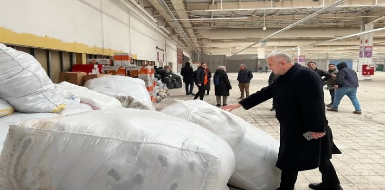 Kocaeli'de deprem bölgesi için hazırlanan ayni yardımların toplanacağı eski Carrefoursa binasında hazırlıklar devam ediyor