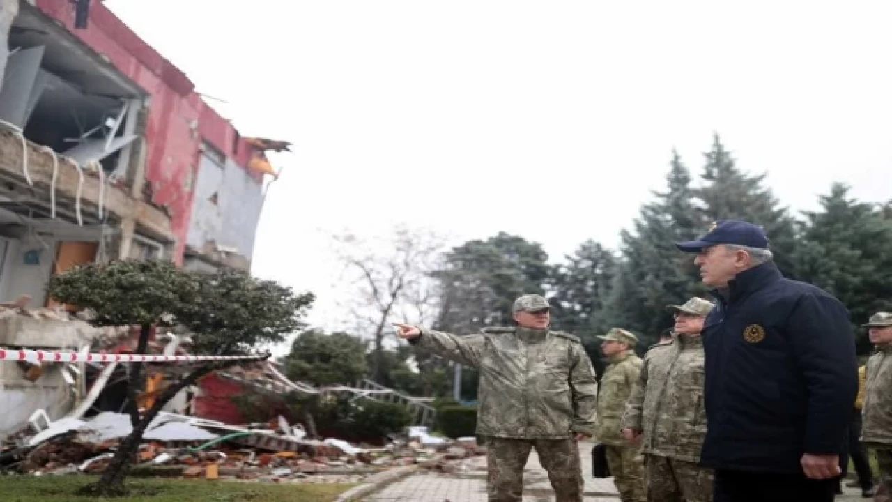 Serinyol’da depremin etkilediği, 3 askerin şehit olduğu 8’inci Komando Tugay Komutanlığında incelemelerde bulunan Bakan Akar, son duruma ilişkin bilgi aldı.