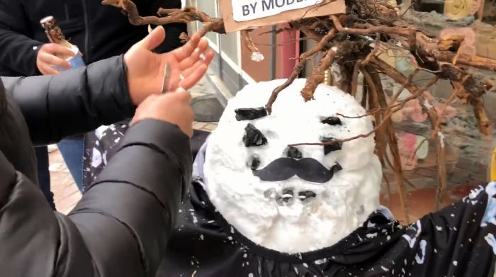 Demir'in kardan adamı traş etmesi kentte renkli görüntüler oluşturdu. (İHA)