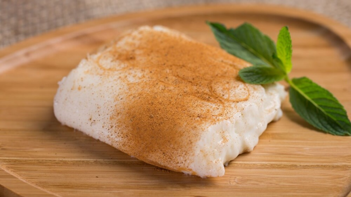 4 su bardağı sütü bir tencereye koyup kaynatın. Şekeri de katıp karıştırın. 2 su bardağı soğuk süte pirinç unu ve nişastayı katıp çırpın. Azar azar tencereye ilave ederek kısık ateşte kıvamını buluncaya kadar pişirin. Tavuk göğsünü ovalayarak ezin, bir bardak suyun içine atıp ice didin. Suyunu süzüp kaynayan malzemeden 1 bardak tavuk etine katın, havan tokmağıyla vurarak tekrar ezin. Tencereye katıp iyice karıştırın. Kare bir tepsiye fırçayla su sürüp malzemeyi içine boşaltın. Soğutup dilimleyerek servis yapın.