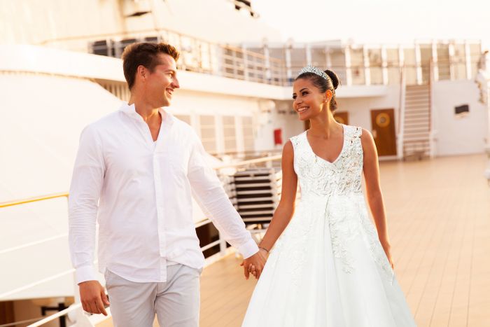 Olağanüstü bir düğün için son moda cruıse gemisinde evlilik!