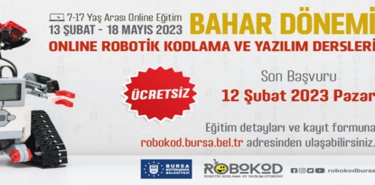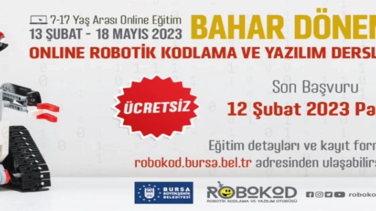 Bursa Büyükşehir Belediyesi’nin başlattığı ‘Robokod Kodlama ve Yazılım’ online bahar dönemi eğitimleri 13 Şubat’ta başlıyor.