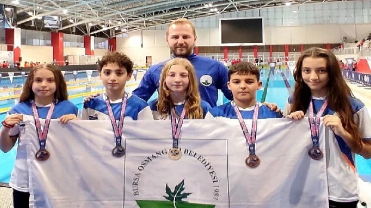 Osmangazi Belediyespor Yüzme Takımı sporcuları, Samsun’da düzenlenen Ulusal Gelişim Projesi 11 Yaş Türkiye Finalleri Yarışları’nda 1 altın, 1 gümüş ve 3 bronz madalyanın sahibi oldu.