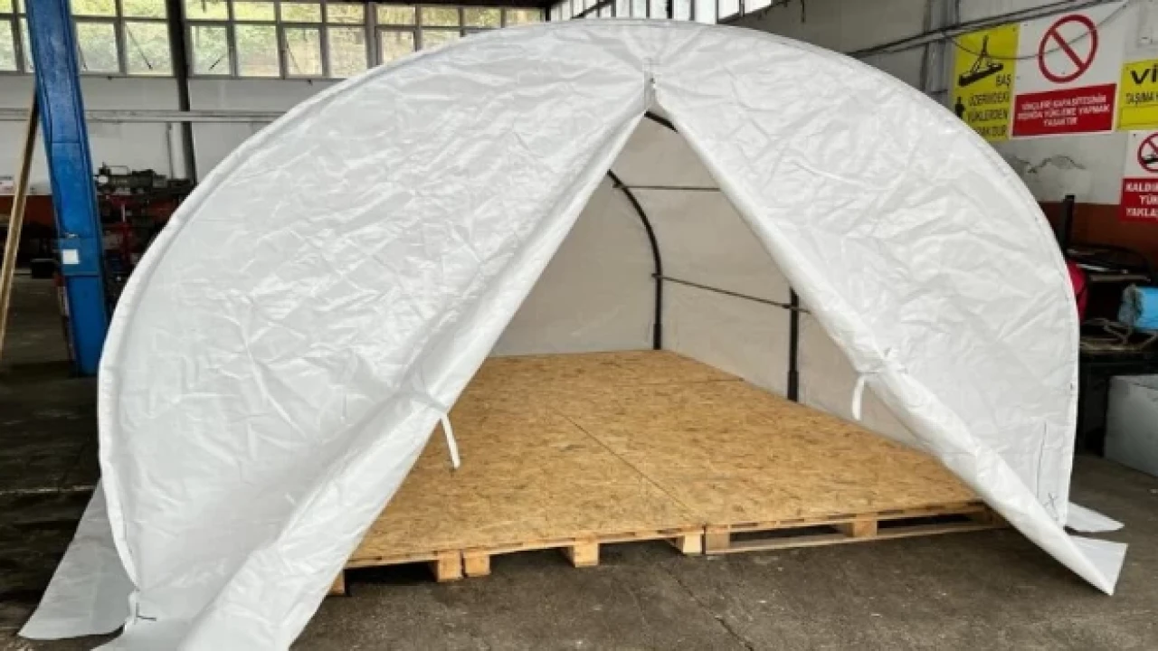 Rize Belediyesi tarafından Hatay iline çadır kent kuruyor. İçerisinde depremzedelerin tüm ihtiyaçlarını karşılayacak üniteleriyle birlikte 200 çadırlık çadır kent için Rize Belediyesi atölyesinde imalat çalışmaları devam ediyor.